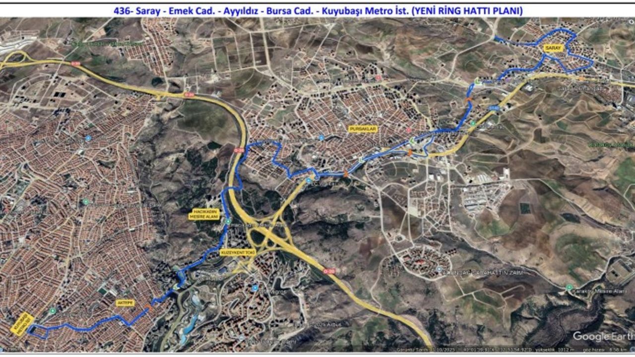 Vatandaşlardan gelen talepler doğrultusunda planlanan 436 nolu Saray – Emek Cad. – Ayyıldız – Bursa Cad. – Kuyubaşı Metro İstasyonu Metro Ring Hattı, 3 Şubat 2026 tarihinde hizmete açılıyor.