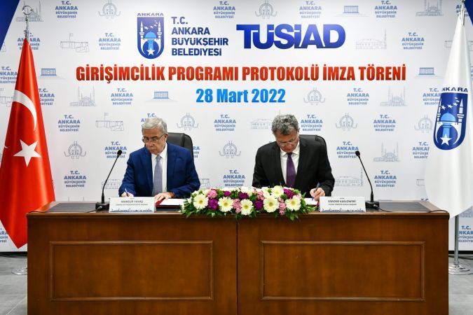 Her fırsatta bilişim alanında Ankara’yı dünya markası hâline getirmeyi hedeflediklerini vurgulayan Büyükşehir Belediye Başkanı Mansur Yavaş, Türk Sanayicileri ve İş İnsanları Derneği (TÜSİAD) Yönetim Kurulu Başkanı Simone Kaslowski ile bu merkezlerde girişimcilik alanında eğitimlerin verilmesi ve girişimci gençlere ortak çalışma ortamlarının sağlanması amacıyla iş birliği protokolü imzaladı.