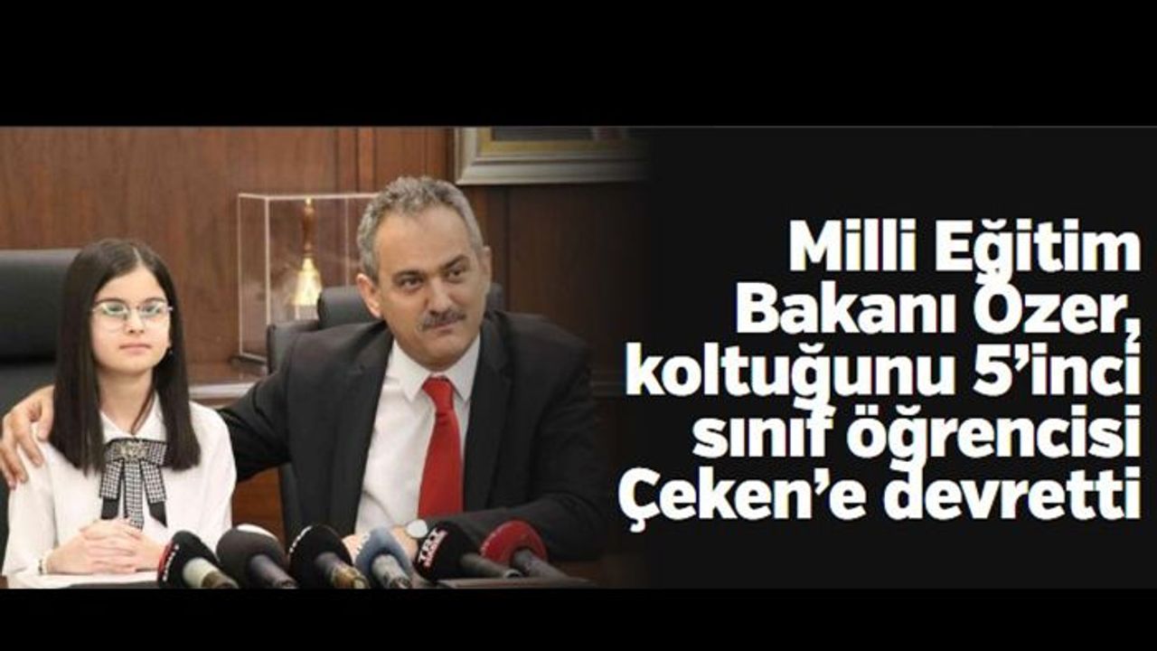 Milli Eğitim Bakanı Mahmut Özer, 23 Nisan Ulusal Egemenlik ve Çocuk Bayramı dolayısıyla Milli Eğitim Bakanlığı’nda çocuklarla bir araya geldi. Özer, bir günlüğüne koltuğunu Tarhuncu Ahmet Paşa Ortaokulu 5. sınıf öğrencisi olan Yağmur Sena Çeken’e bıraktı. Toplamda 10 çocuktan oluşan heyet Bakan Özer ile sohbet etti. Çocukların 23 Nisan Ulusal Egemenlik ve Çocuk Bayramı’nı kutlayarak konuşmasına başlayan Bakan Özer, bu bayramı Gazi Mustafa Kemal Atatürk’ün çocuklara hediye ettiğini anımsatarak sözü ve koltuğunu 5’inci sınıf öğrencisi Yağmur Sena Çeken’e bıraktı.