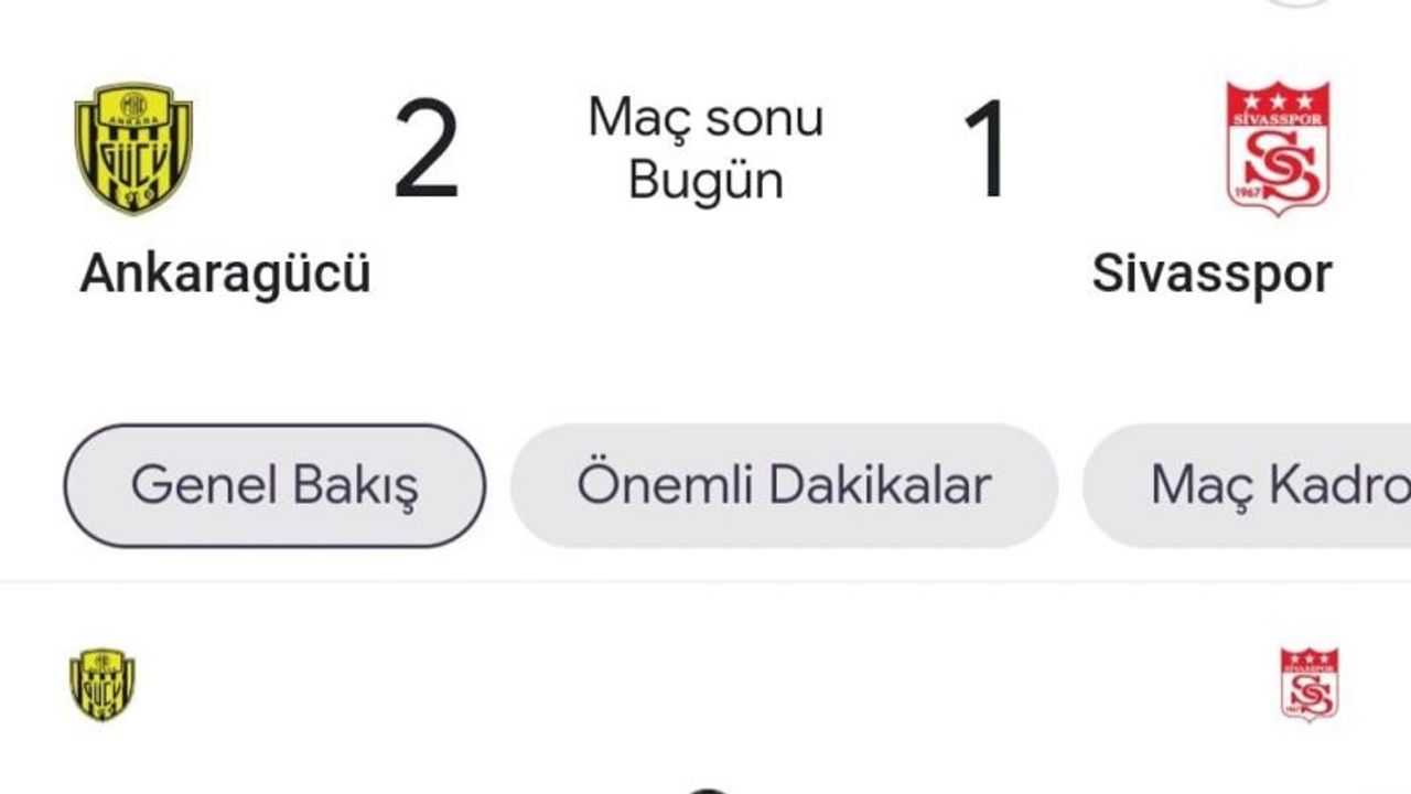 Goller: Beridze (dk. 2) Sowe (dk. 43) (MKE Ankaragücü), N’jie (dk. 48) (Sivasspor)