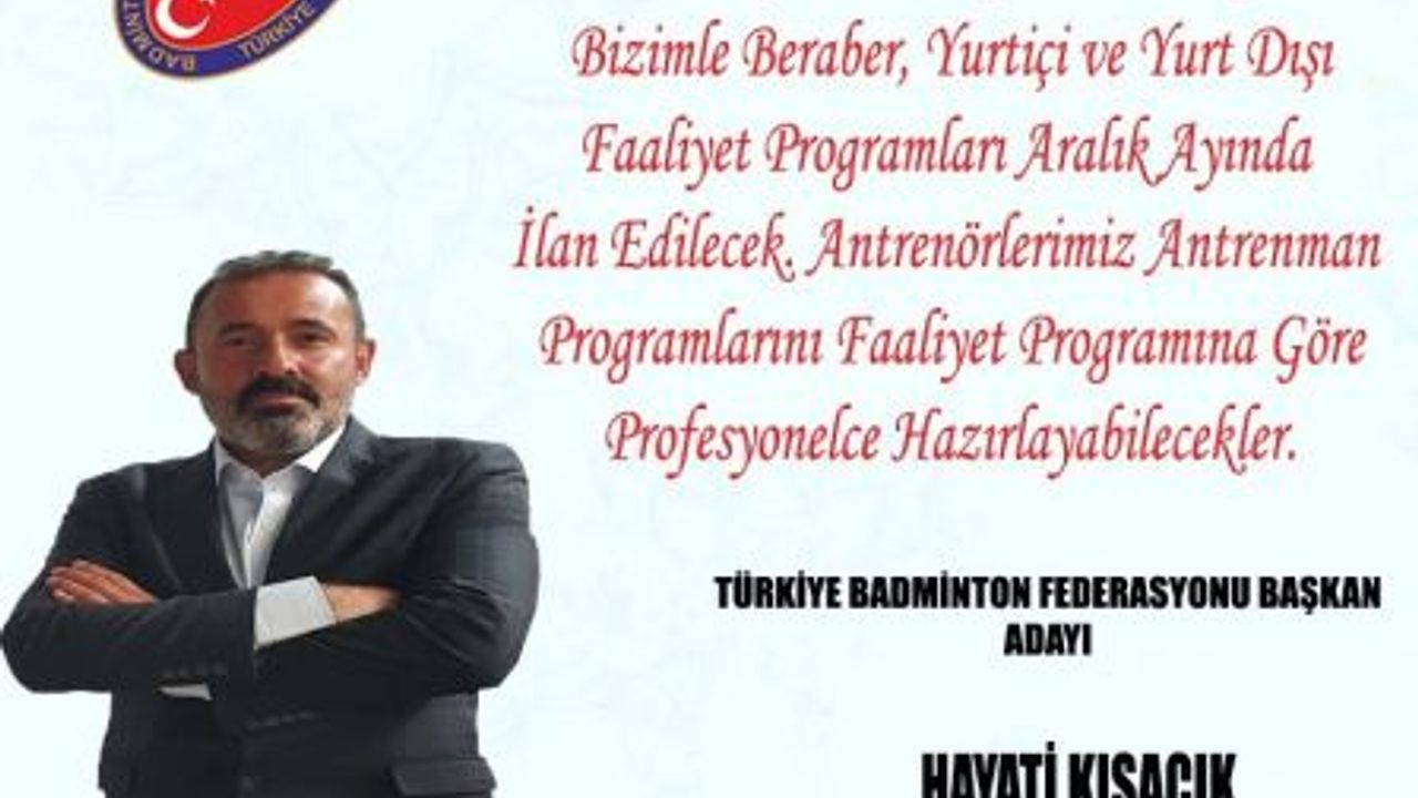 Badminton camiasının sevilen ismi Hayati Kısacık, 2021 Badminton Federasyon Seçimleri İçin Türkiye Badminton Federasyonu Başkanlığı’na Adaylığını geçtiğimiz hafta resmi olarak açıkladı.