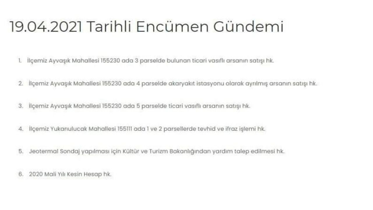 Belediye meclis gündeminde yer alan satış konusuyla ilgili iddialar hakkında CHP ve İYİ Parti İlçe Başkanı Tuncer Kaplan konu hakkında sosyal medya hesabında açıklamalarda bulundu. Kaplan, açıklamalarında şu ifadelere yer verdi;