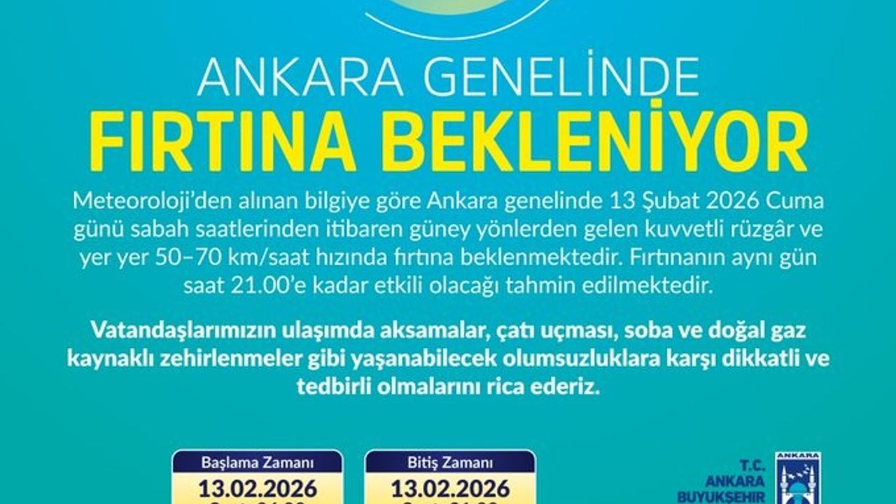 Yetkililer; çatı uçması, ağaç devrilmesi, tabela düşmesi ve ulaşımda yaşanabilecek aksamalara karşı vatandaşları dikkatli ve tedbirli olmaya çağırdı.